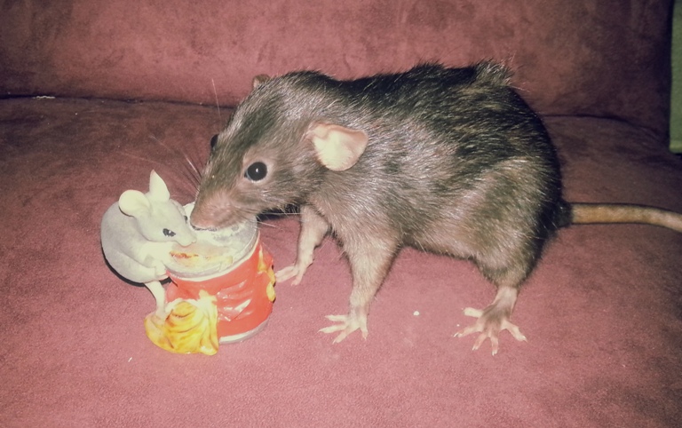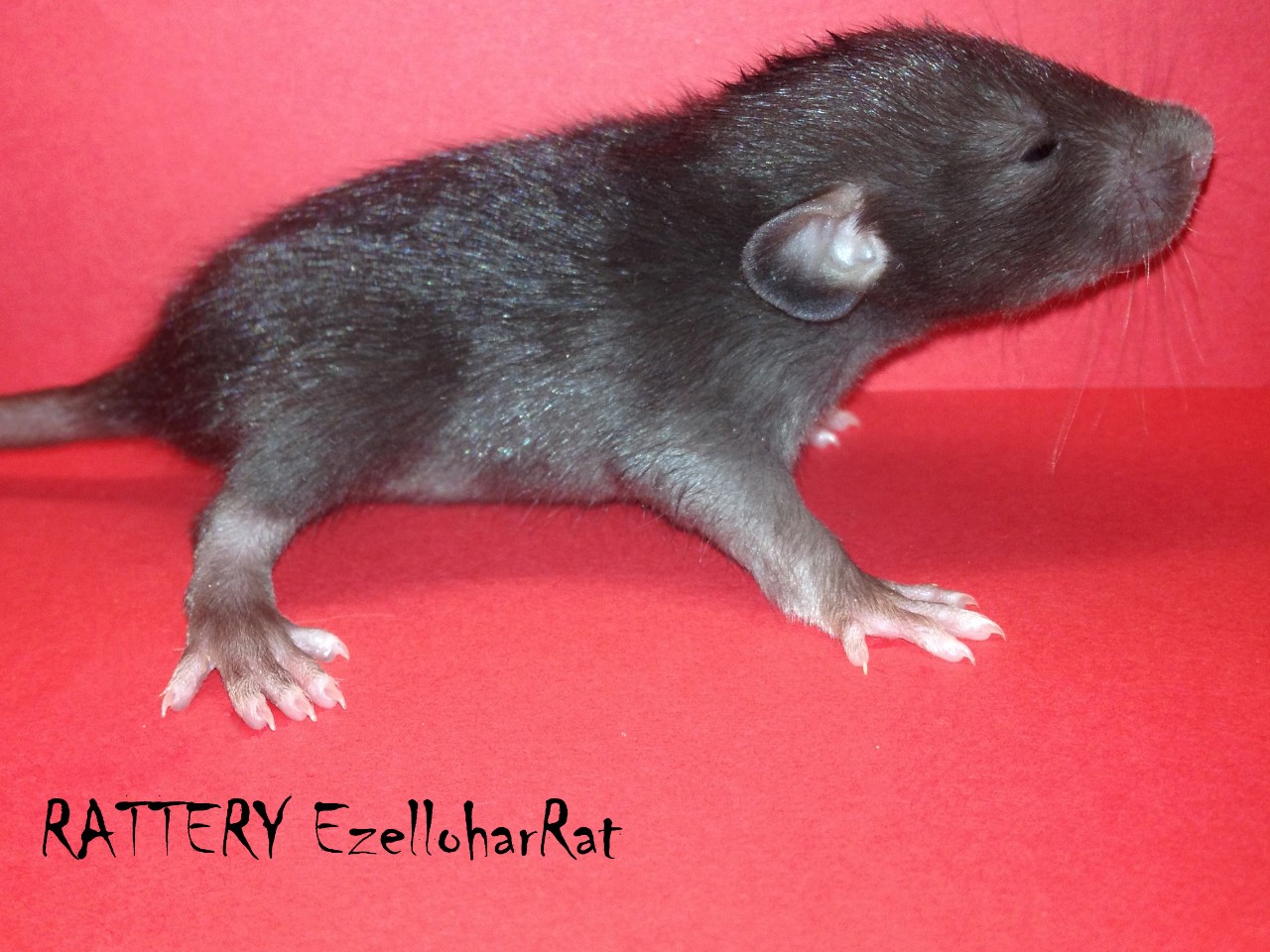Úžasné zvieratko, tak isto jedna z mojich vysnívaných samičiek. Vždy som chcela mať znova čierneho dumbáčika a rozhodla som sa pomenovať ju Elfka :-) Je to taký krpček, ktorý sa rád mazná a vtierka a je veľmi kľudná. V klietke je asi na poslednom mieste, pretože sa nesnaží byť dominantná a proste len rada kľudne spinká s ostatnými. Ale ak sa okolo klietky obšmieta nejaký samec, vie sa aj rozčertiť :-D Na papkanie ona nie je moc náročná, občas ohrdne aj jedlom za ktoré by iné potkany vraždili. Je to také moje malé zlaté lízatenko :-*